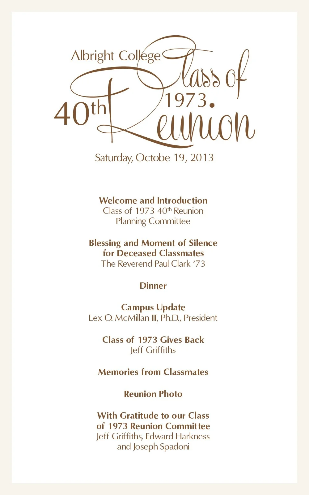 Class of 1973 40th Reunion Program